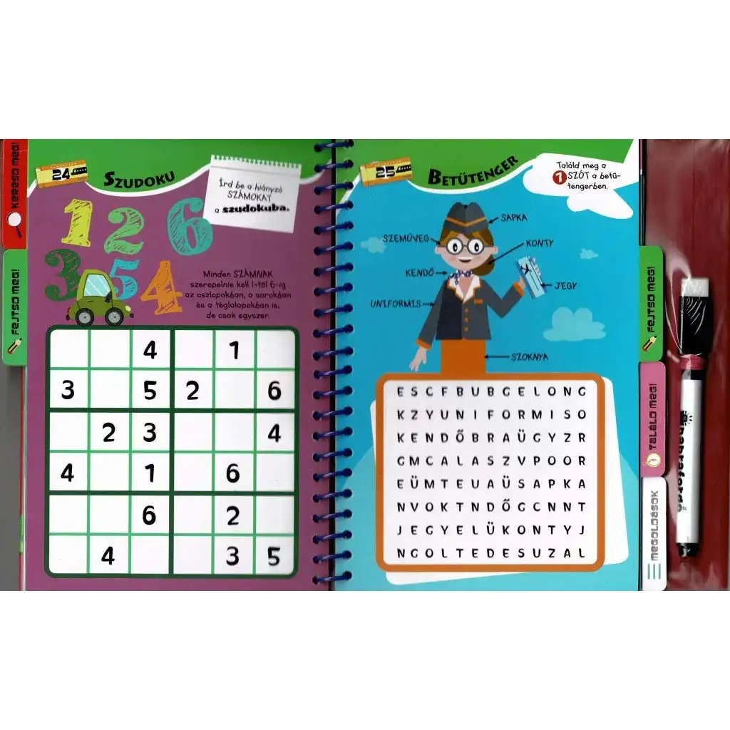 Die Spiralbindung und der abwischbare Filzstift ermöglichen es, die Aufgaben immer wieder aufs Neue zu lösen, sodass das Buch langfristig ein hervorragender Begleiter auf jeder Reise sein kann.