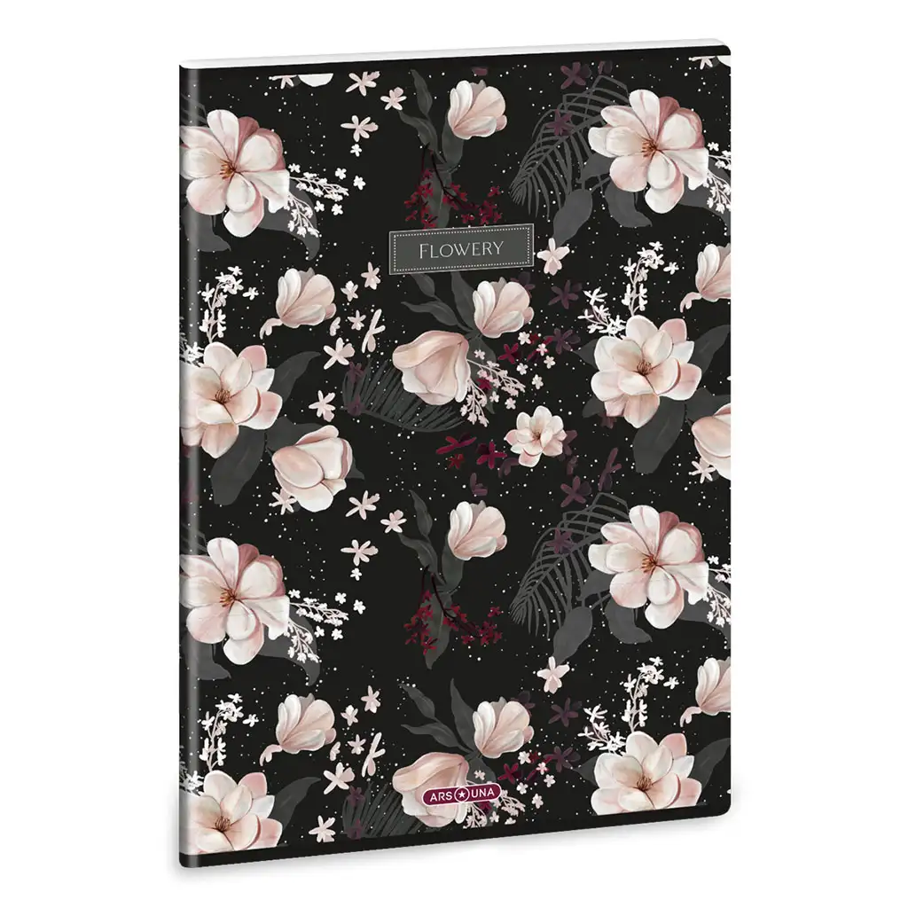 Ars Una: Flowery Black extra Heftklammern glattes Heft A/4Ars Una: Flowery Black extra Heftklammern glattes Heft A/4