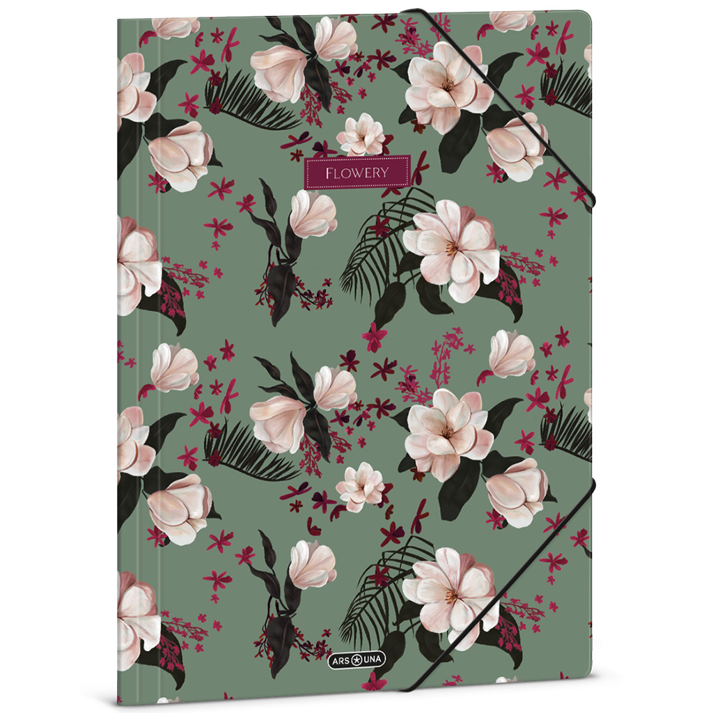 Ars Una: Flowery Green – geblümte Gummizugmappe im A4-Format