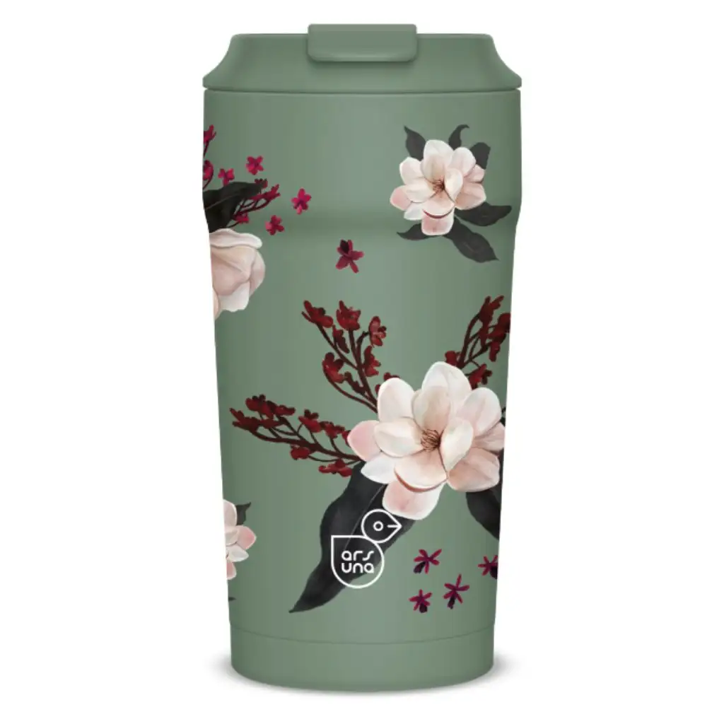 Die Ars Una Flowery Green Thermotasse mit 470 ml Volumen ist die perfekte Verbindung von naturinspirierter Eleganz und moderner Funktionalität. Die grüne Grundfarbe und das detailreiche Blumenmuster verleihen der Tasse ein schlichtes, dennoch feminines Erscheinungsbild, das sie zu einem stilvollen Accessoire für jeden Anlass macht. Egal, ob du sie zur Arbeit, in die Schule, auf Reisen oder beim Spaziergang mitnimmst – dieser praktische Becher sorgt dafür, dass dein Getränk lange seine Temperatur behält.