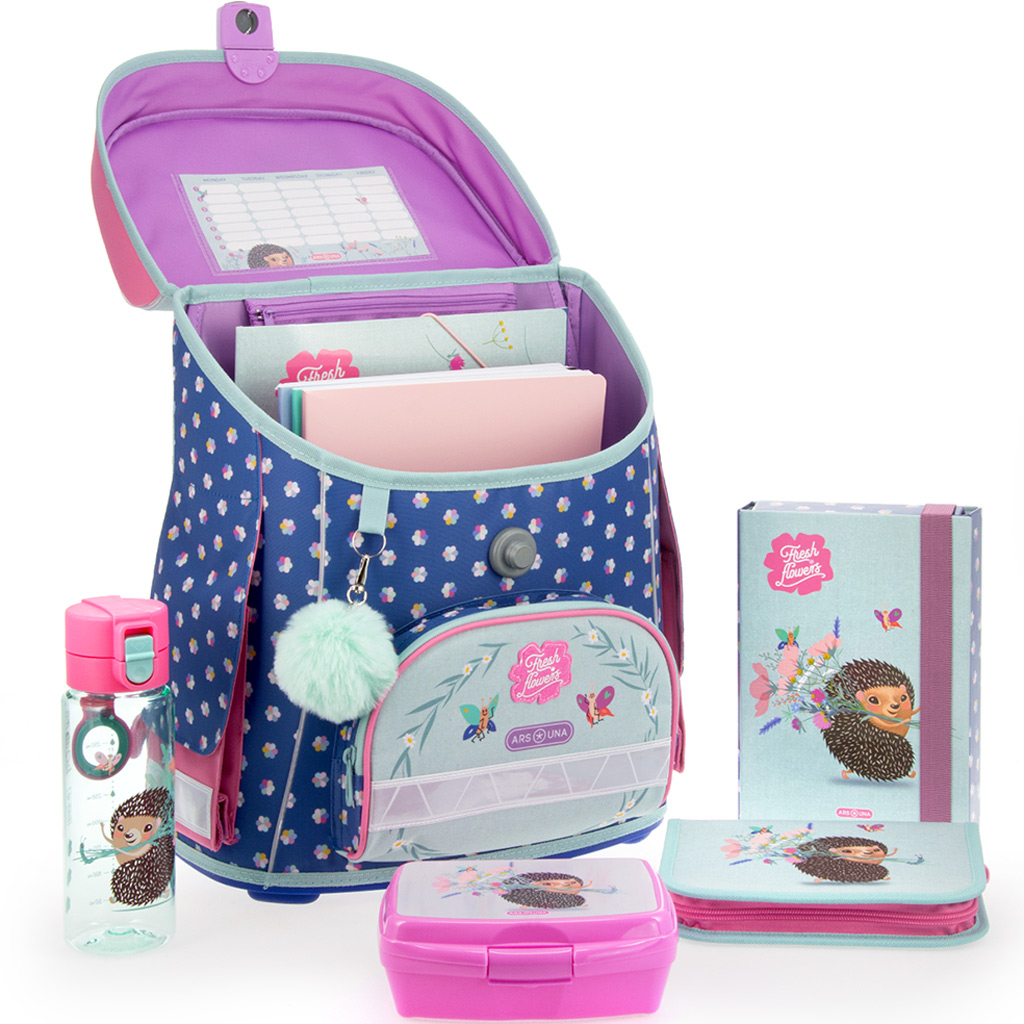 Der Ars Una Fresh Flowers Schulranzen mit Magnetverschluss ist die ideale Wahl, wenn Sie für Ihr Kind einen bequemen, praktischen und richtig liebenswerten Schulranzen für die Grundschuljahre suchen. Er wurde speziell für die Klassen 1–4 entwickelt, sodass Größe, Aufbau und Gewicht perfekt auf die Bedürfnisse der Kleinen abgestimmt sind. Das bezaubernde Igel- und Blumenmuster sowie die fröhlichen Farben sorgen garantiert für gute Laune im Alltag, sodass Ihr Kind ihn gern jeden Tag mitnimmt.