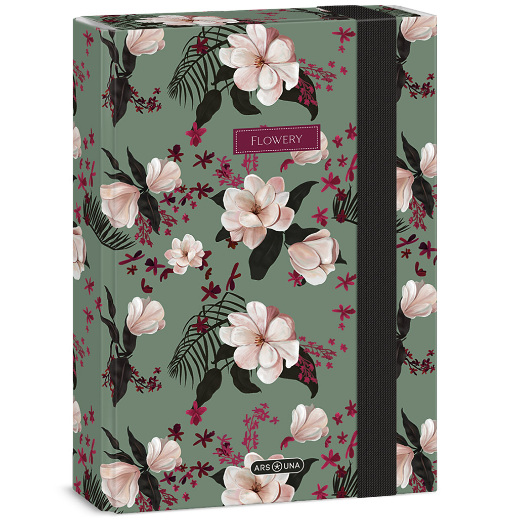 Die Ars Una Flowery Green A/5 Heftbox mit Blumenmuster bringt eine elegante und naturnahe Stimmung in den Schulalltag deines Kindes. Das auf grünem Grund erscheinende, fein gestaltete Blumenmuster verleiht ein besonders stilvolles Aussehen und wirkt gleichzeitig freundlich und harmonisch. Die massive, harte Kartonhülle schützt Hefte und Unterlagen effektiv vor Beschädigungen, sodass sie stets ordentlich bleiben. Der Gummibandverschluss sorgt dafür, dass nichts herausrutscht. Praktische Wahl für Schule, Nachmittagskurse oder zur Ordnung zu Hause.