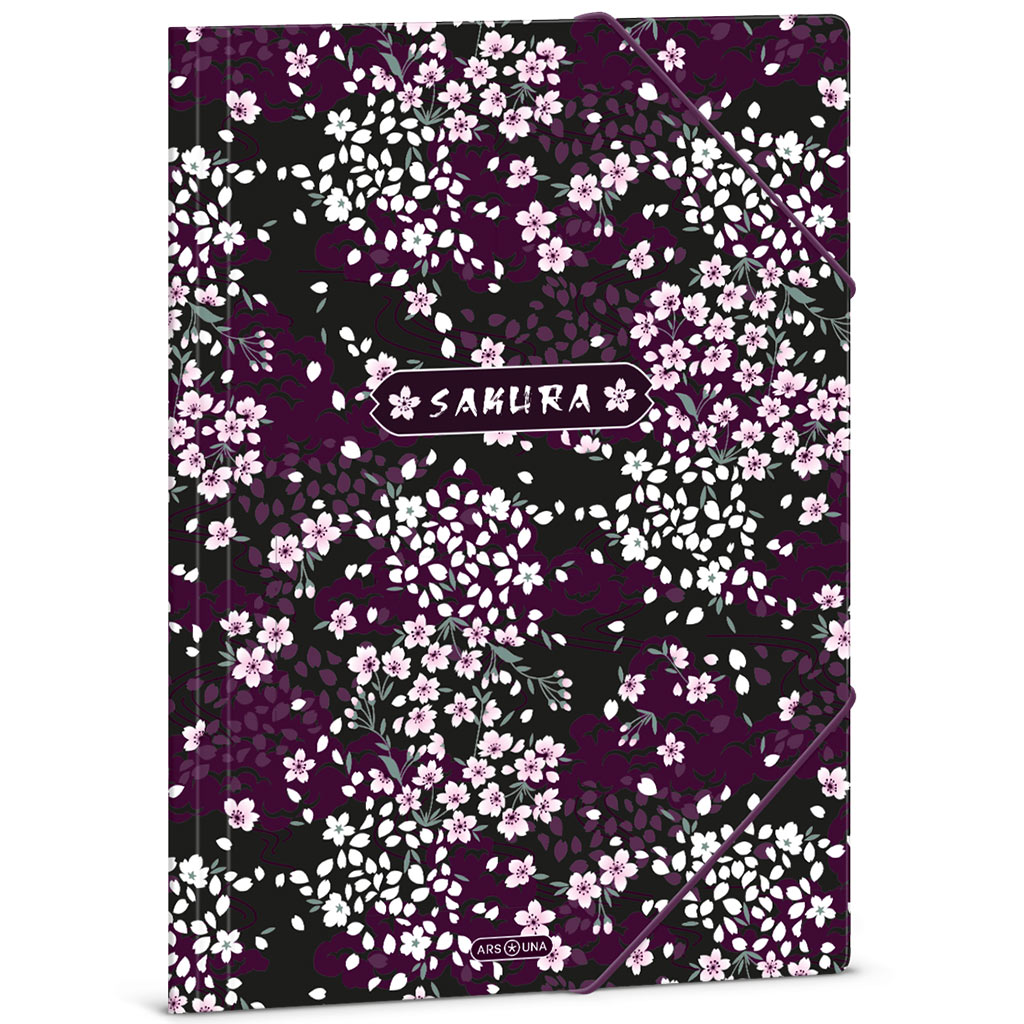 Ars Una: Gummizug-Mappe mit Sakura-Blütenmuster, A4-Format