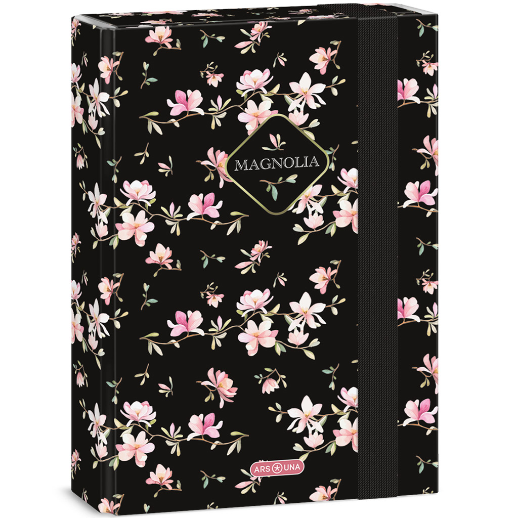 Die Ars Una Magnolia-Heftbox A/5 ist die perfekte Wahl, wenn du nach einer wirklich eleganten und praktischen Lösung suchst, um die Schulausstattung deines Kindes zu ordnen. Auf schwarzem Grund dezent platzierte Magnolienblüten verleihen ein schlichtes, dennoch besonderes Erscheinungsbild und sorgen dafür, dass sie garantiert aus der Masse hervorsticht. Die robuste, harte Kartonumhüllung schützt Hefte und Unterlagen vor dem Knicken, während das elastische Gummiband dafür sorgt, dass alles sicher an seinem Platz bleibt. Ideal für die Schule, für Nachmittagskurse oder auch für den Gebrauch zu Hause.