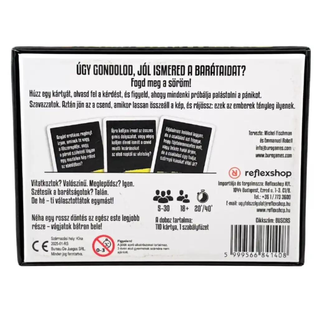 Das Spiel funktioniert so gut, weil es keinen Ausweg gibt: Kein Passen, keine Ausreden – nur peinliches Lachen und unhaltbare Geständnisse. Die Fragen sind absichtlich so gestaltet, dass die Runde zu diskutieren und zu lachen beginnt und sich immer weiter in den „Okay, aber was würdest DU wählen?“-Strudel hineinsteigert. Man kann mit normaler Punktewertung spielen, aber genauso locker „einfach nur fürs Chaos“ – die Stimmung wird so oder so garantiert ausarten.