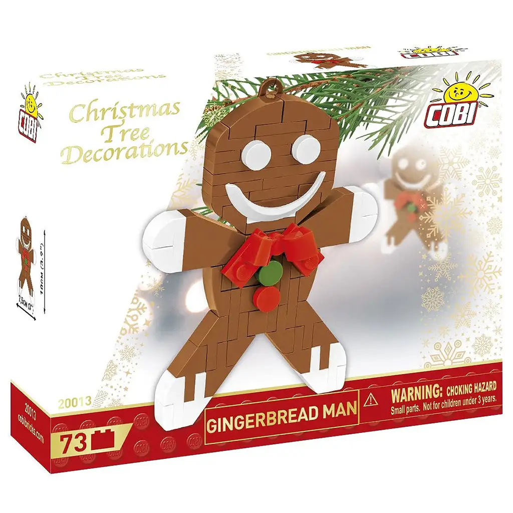 Der Duft von Lebkuchen ist fast schon spürbar, und jetzt kann er endlich für immer am Baum hängen – COBI: Weihnachtsbaumschmuck mit Lebkuchen-Bauset! Dieses Bauset mit 73 Elementen formt eine fröhliche, festlich gestimmte Lebkuchenfigur, die nicht nur niedlich, sondern auch ein wirklich auffälliger Schmuck für den Weihnachtsbaum oder jeden anderen Platz in der Wohnung sein kann. Im Set befindet sich auch ein Ringelement, mit dem die Figur ganz einfach an ein Band oder eine Schnur gehängt werden kann.