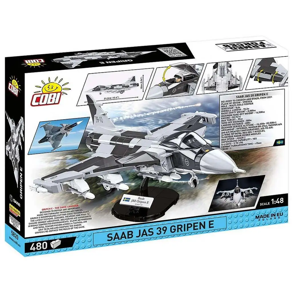 Das COBI SAAB JAS 39 Gripen E Flugzeug-Bauset ist ein Modell des modernsten Mehrzweck-Kampfjets des schwedischen Flugzeugherstellers SAAB. Der Name „Gripen“ bezieht sich auf das mythische Tier im Wappen des Herstellers und symbolisiert die Vielseitigkeit des Flugzeugs. Die Abkürzung JAS stammt von den schwedischen Wörtern Jakt (Jagd), Attack (Angriff) und Spaning (Aufklärung) und beschreibt die Fähigkeiten der Maschine perfekt. Die E-Variante entstand nach den Anforderungen der schwedischen und brasilianischen Luftwaffe – mit verlängerter Rumpflänge, größerer Spannweite, erhöhtem Gewicht und Reichweite, sowie verbesserter Elektronik und einem 22 Prozent stärkeren Triebwerk.