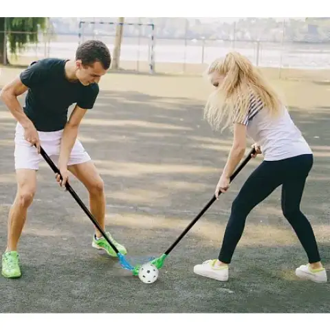 Floorball ist ein dynamisches, schnelles Ballspiel mit Regeln, die dem Eishockey ähneln, jedoch sind für das Spiel keine speziellen Bedingungen wie beim Hockey erforderlich. Das Spiel kann sowohl im Freien als auch in der Halle, auf Asphalt oder auf Rasen gespielt werden. Mit diesem Set können zwei Teams gleichzeitig gegeneinander spielen. Die Beliebtheit von Floorball ist in den letzten Jahren weltweit gestiegen, insbesondere in Europa und Nordamerika. Der Sport ist leicht zu erlernen und bietet eine ideale Freizeitbeschäftigung für alle Altersgruppen, wobei er zur Verbesserung der körperlichen Ausdauer und der Teamarbeit beiträgt. Das Set enthält 2 Schläger, ein Tor und einen gelochten Ball. Die Größe des Tores beträgt im aufgebauten Zustand 79x34x55cm.