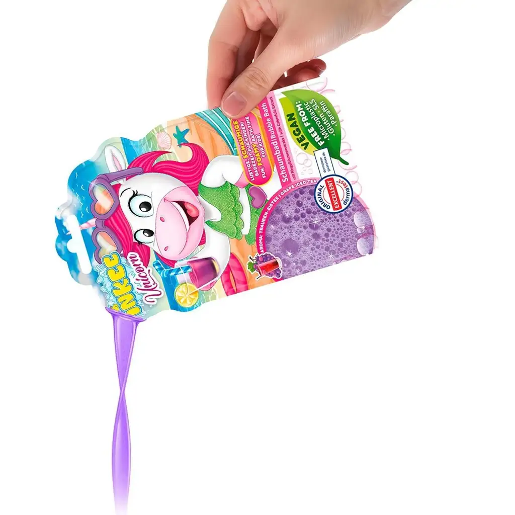 Springe mit einem fröhlichen Einhorn in die Schaumberge und genieße jeden Moment des Badens mit dem Duft von Traubensirup! Das Craze Inkee – Unicorn Schaumbad verzaubert Kinder mit seinem besonderen Traubenduft und lilafarbenem Schaum, während die hautfreundlichen, veganen Inhaltsstoffe auch die Eltern beruhigen. So wird das Baden nicht nur zur Reinigung, sondern zu einem echten, duftenden Erlebnis!