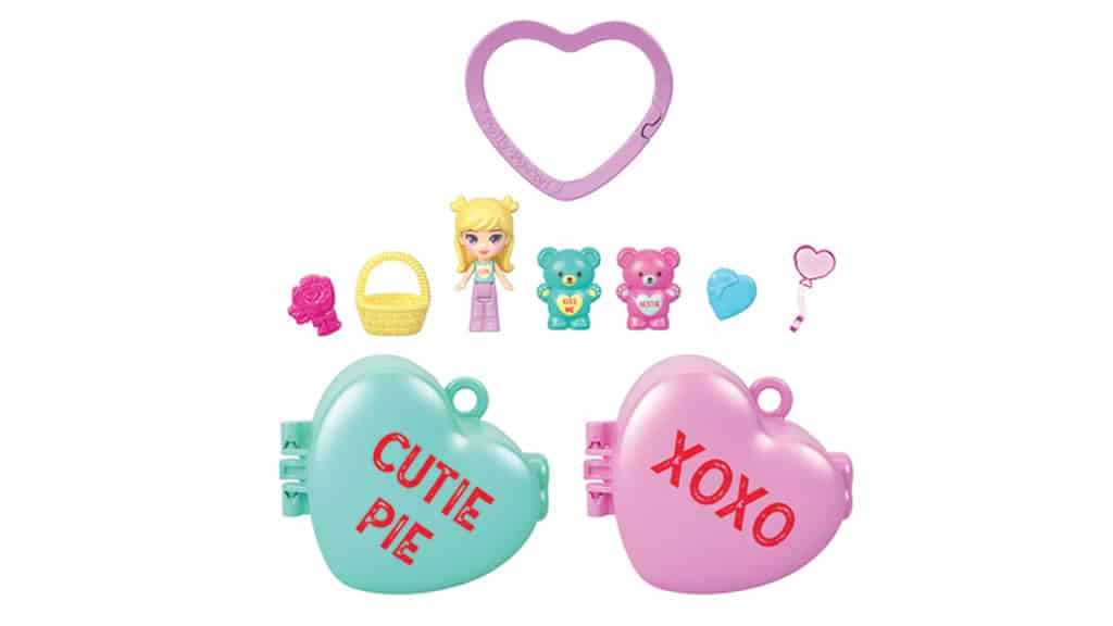 Sei mein! Polly Pocket und ihre lieben Freunde, die Sweethearts-Bärchen, begeben sich mit diesem Spielset auf ein süßes Abenteuer. Das Set enthält zwei von Sweethearts inspirierte Kompakts, die beim Öffnen kleine, detailreiche Welten enthüllen. Kinder können die Herzen auch an einen Schlüsselanhänger befestigen, sodass sie sie überallhin mitnehmen und unterwegs spielen können.