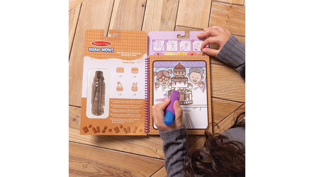 Kinder können den nachfüllbaren Wassertift benutzen, der speziell für kleine Hände entwickelt wurde, um Seiten mit Wasser zu färben und dabei feine Düfte zu entdecken. Die Seiten sind mehrfach verwendbar, sodass die Kinder immer wieder damit spielen können, sobald das Wasser getrocknet ist. Erhältlich mit Treats (Süßigkeiten) oder Fruits (Früchte) Motiven.