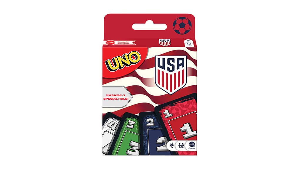 Mattel erweitert den Wettkampfgeist auch auf den Familien-Spieleabend mit dem UNO U.S. Men’s National Team-Kartenspiel – aber Vorsicht vor den Strafkarten! Das ikonische Spiel bietet mit der neuen „Gelbe und Rote Karte“-Regel ein besonderes Spielerlebnis, bei dem einige Karten zu Strafen werden. Diese Neuerung macht das Spiel noch spannender und abwechslungsreicher, sodass jedes Familienmitglied den Nervenkitzel des Wettbewerbs erleben kann, während alle gemeinsam Spaß haben.