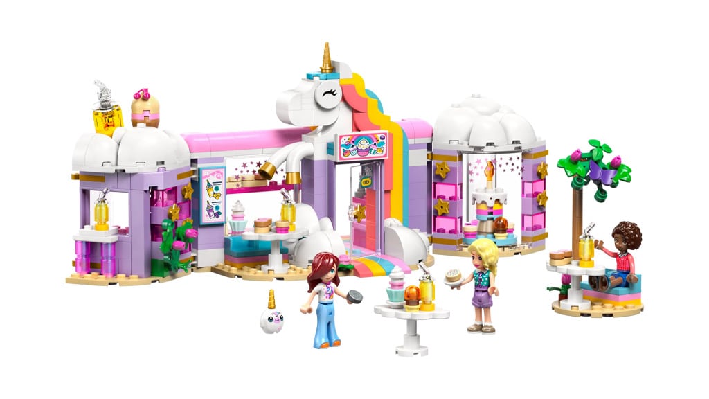Auch die Kleinen können das LEGO Friends Einhorn Traum Café bauen. Dieses Bauset mit 475 Teilen enthält drei Minifiguren, eine Saft- und Smoothiebar, einhornbezogene Accessoires, einen drehbaren Cupcake-Ständer und viele weitere spannende Elemente. Die farbenfrohen und kreativen Bauteile des Sets fördern die Fantasie und die Fingerfertigkeit der Kinder und bieten stundenlangen Spielspaß. Die Einhorn-Motive und die detailreichen Accessoires machen dieses Set besonders attraktiv für alle kleinen Baumeister.