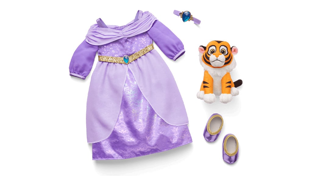 Fügen Sie Ihrem Baby mit Accessoires, die von Prinzessin Jasmin aus dem Märchen Aladdin inspiriert wurden, einen Hauch von arabischem Zauber hinzu! Das Set enthält ein lila Satinkleid, passende Accessoires sowie eine weiche Baby Rajah Plüschfigur. Mit diesen besonderen Stücken wird das Spielen noch magischer und die Kinder können ganz einfach ihre Lieblingsszenen aus dem Märchen nachspielen.