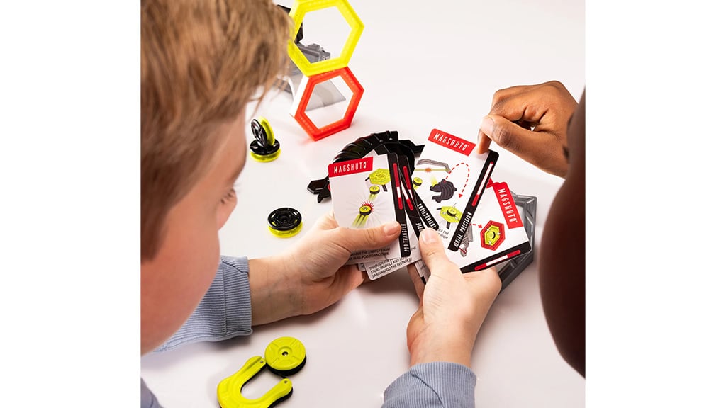 Der Magnet-Shooter Stuntpark von Fat Brain Toys verwandelt das Kinderzimmer in eine echte Stunt-Arena! Dieses offene, modulare Spielset enthält ein magnetisches Trick-Shooter-System, das es Kindern ab 6 Jahren ermöglicht, ihre eigenen Stunt- und Actionszenen zu bauen.