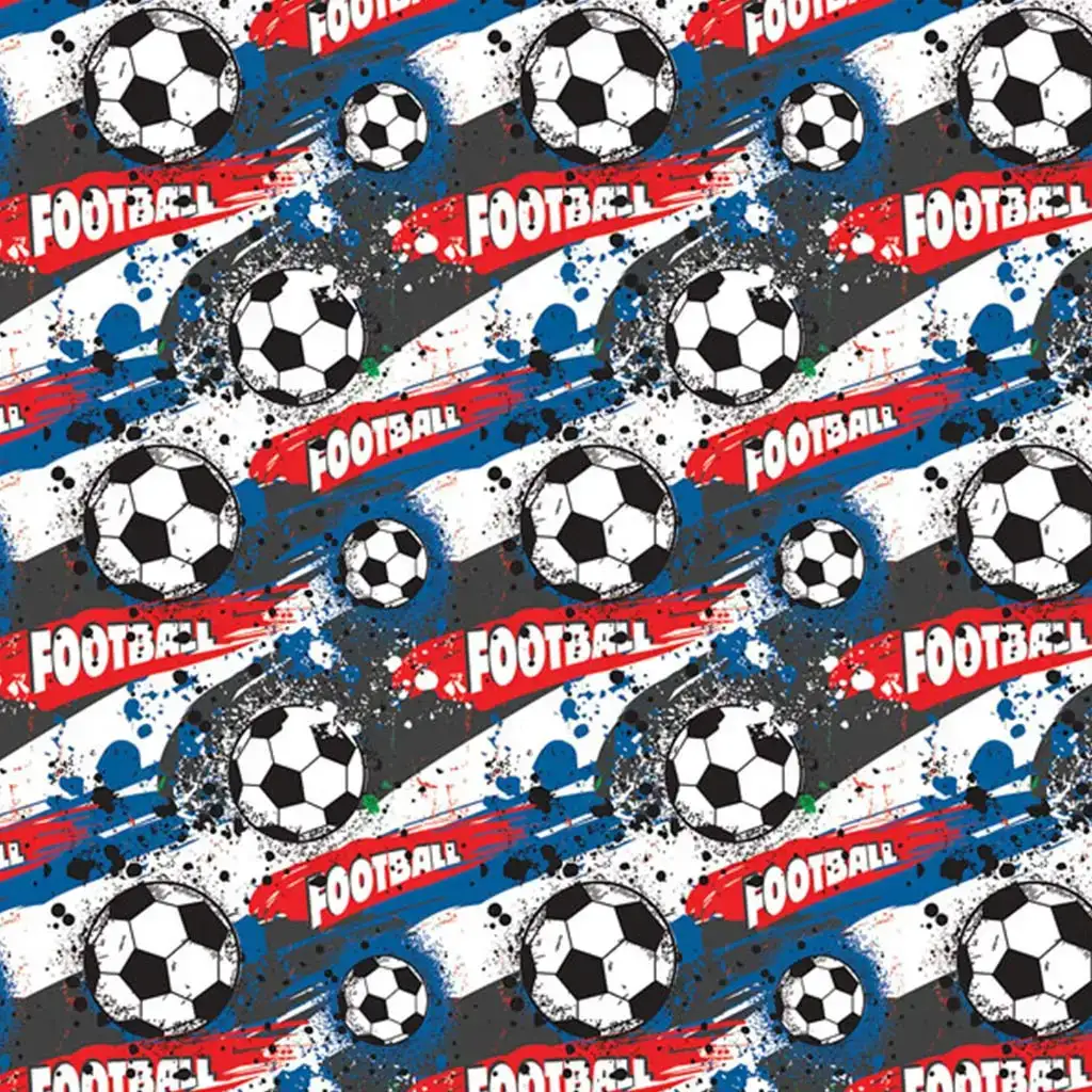 Die schwarz-weißen Fußbälle zusammen mit den roten und blauen grafischen Elementen sorgen für einen besonders auffälligen, modernen Effekt. Dieses Geschenkpapier ist nicht nur einzigartig und stilvoll, sondern macht den Moment des Schenkens noch spannender und besonderer. Egal, ob du ein Fußball-Gesellschaftsspiel, ein Trikot oder Fußballschuhe einpackst – das Ergebnis sieht immer großartig aus.