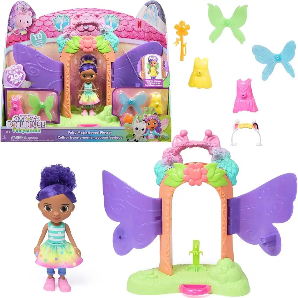 Im Zentrum des Sets steht die Gabi-Figur, die mit den beiliegenden Accessoires in eine zauberhafte Fee verwandelt werden kann. Die bunten, austauschbaren Flügel, Kleider und kleinen Accessoires bieten mehr als 20 verschiedene Erscheinungsbilder, sodass jedes Spiel neue Geschichten und Stile entstehen lässt. Das eindrucksvolle, flügelförmige Tor ist nicht nur Kulisse, sondern auch Schauplatz der Verwandlung: Hier beginnen die feenhaften Abenteuer in Fairyland.