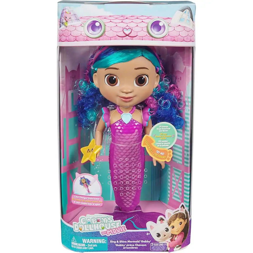 Gabis Puppenhaus – Film: Singende und leuchtende Meerjungfrau Gabi-Puppe bringt ein magisches Erlebnis direkt aus der beliebten Zeichentrickwelt ins Kinderzimmer. Diese besondere Meerjungfrau-Gabi-Puppe ist nicht nur wunderschön, sondern auch interaktiv: Sie singt, leuchtet und schafft beim Spielen eine echte Märchenatmosphäre. Ihr glitzernder, farbwechselnder Meerjungfrauenschwanz zieht sofort die Aufmerksamkeit der Kinder auf sich, besonders dann, wenn er in Kontakt mit Wasser noch beeindruckender wird.
