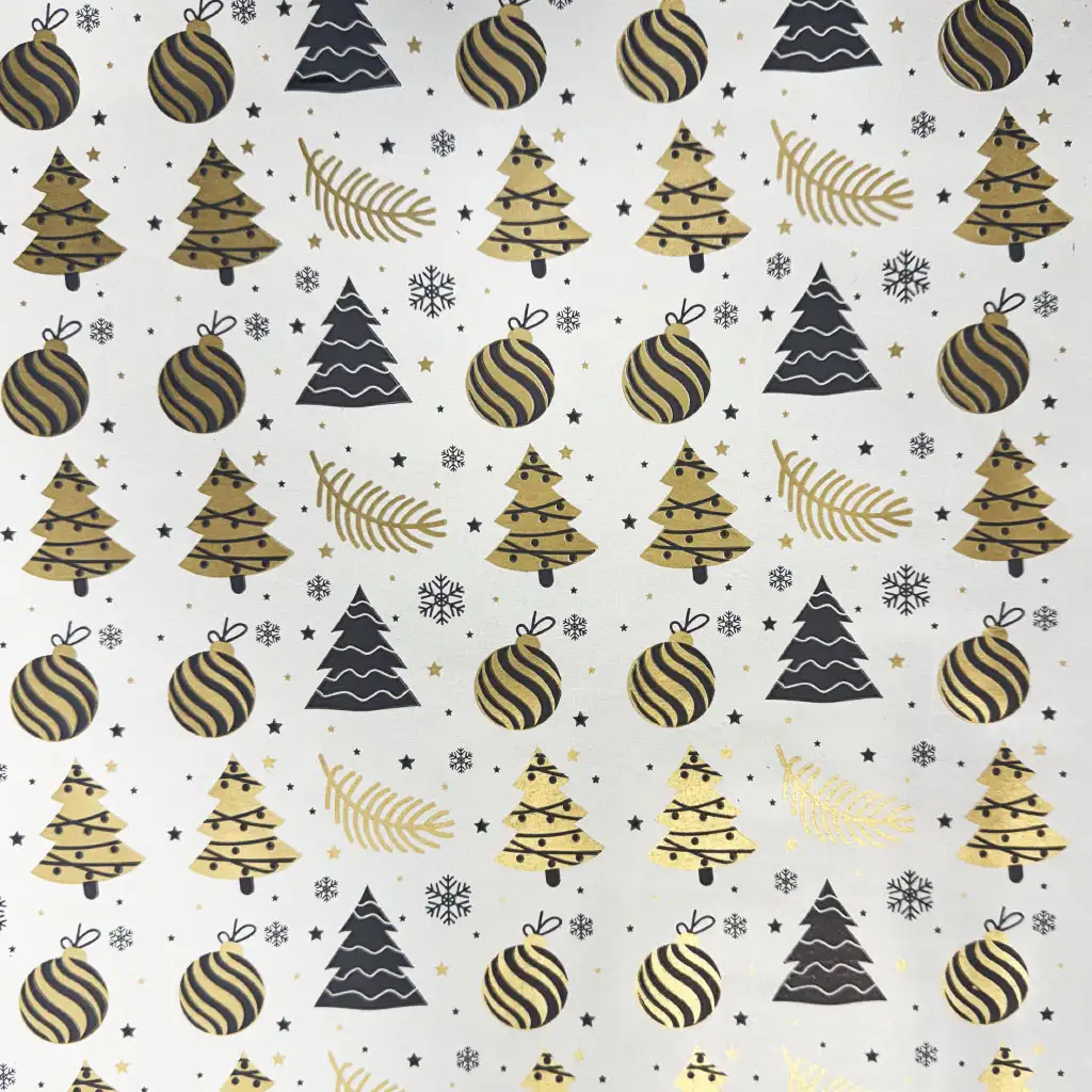 Wenn du wirklich eine elegante und raffinierte Verpackung für Weihnachten suchst, ist das Geschenkpapier „Golden Elegance“ die perfekte Wahl. Das harmonische Wechselspiel von Gold und Schwarz, stilisierte Weihnachtsbäume, glänzende Kugelornamente, Tannenzweige und Schneeflocken bilden das Muster, das sowohl modern als auch klassisch ist. Die goldenen Elemente auf weißem Hintergrund verleihen jedem Geschenk einen echten Premium-Look.