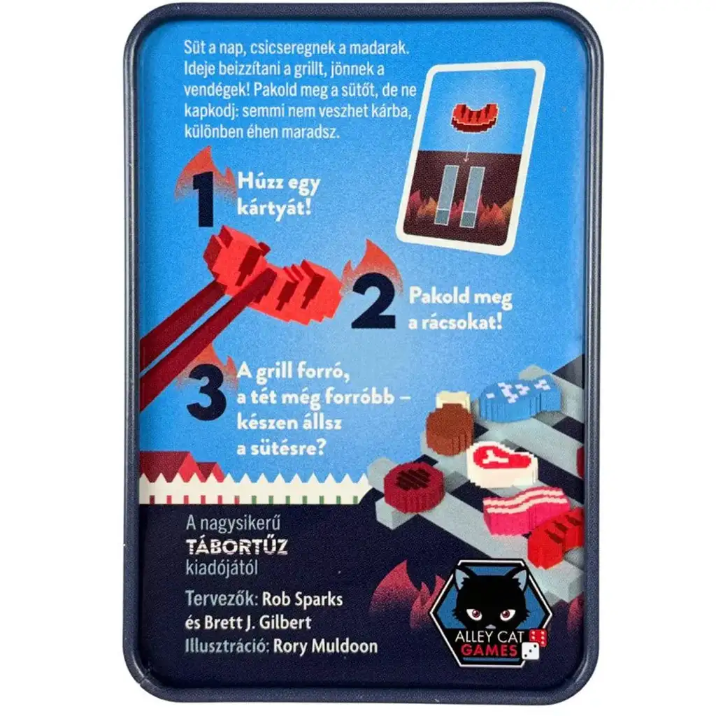 Das Spielprinzip ist einfach, aber äußerst unterhaltsam: Ziehe eine Karte, lege das entsprechende Fleisch- oder Gemüsestück auf den Mini-Grill und versuche, das Grillrost mit einer Zange im Gleichgewicht zu halten! Aber Vorsicht: Wenn du zu gierig bist oder ungeschickt stapelst, fällt alles vom Grill und du gehst leer aus!