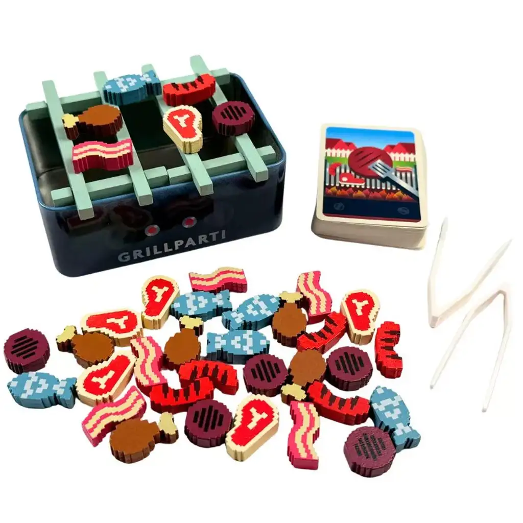 Stell dir vor, draußen scheint die Sonne, die Vögel zwitschern und im Garten glüht bereits der Grill – alles ist bereit für die perfekte Grillparty! Das Gesellschaftsspiel Grillparty zaubert dieses Erlebnis auf den Tisch, gewürzt mit Spaß und Herausforderung. Es ist ein schnelles, actionreiches und lustiges Geschicklichkeitsspiel, bei dem die ganze Familie gemeinsam Spaß haben kann.