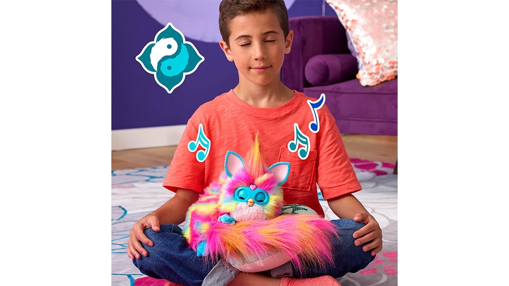 Hasbro bringt mit Hilfe von DJ Furby Rainbow den Zauber von Furby Land ins Kinderzimmer! Dieses brandneue, plüschige Furby sorgt mit fünf verschiedenen Spielmodi für noch mehr Spaß, die mehr als 1000 mögliche Spielvariationen bieten. Die fünf Spielmodi sind: Musik, Minispiele, Partyspiele, Ruhezeit und Freundschaftszeit. Bei so vielen Möglichkeiten können Kinder ab 6 Jahren ihr eigenes Abenteuer mit Furby wählen.Sie komponieren sogar eigene Melodien, feiern zu Liedern in Furbish, entdecken mehr als 20 Spiele oder entspannen sich mit geführten Yoga-Übungen – dieser Furby kann alles! Der Wechsel zwischen den Spielmodi ist einfach: Man muss nur den herzförmigen Edelstein im Gesicht von Furby drücken. Mit den Knöpfen an den Vorderpfoten von Furby kann man verschiedene Spiele auswählen, und auch mit dem leuchtenden Bauch kann man spielen, um Furbys lustige Reaktionen zu sehen.