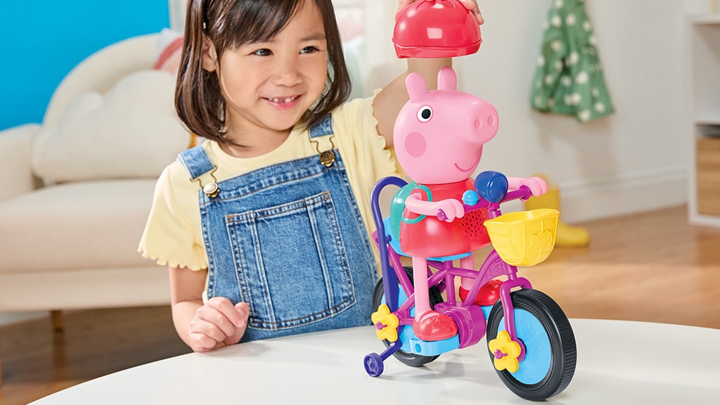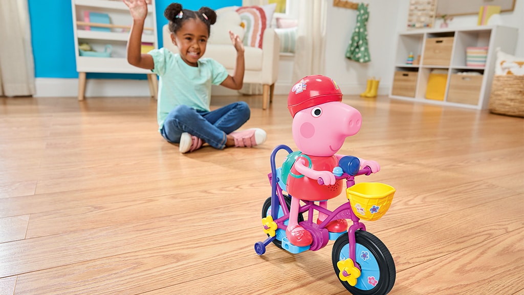Die beliebte Vorschulserie, Peppa Wutz, inspirierte das Ready, Pedal, Go Peppa Spiel, das Kindern ab 3 Jahren hilft, Peppa beim Fahrradfahrenlernen zu begleiten. Zum Spiel gehört eine Schiebestange, die die Kleinsten beim ersten Spielen unterstützt. Sobald sie sicherer sind, kann die Stange entfernt werden und sie können beobachten, wie die Figur selbstständig in die Pedale tritt. Dieses Spiel ist nicht nur unterhaltsam, sondern fördert auch die Koordination und Selbstständigkeit, während die Kinder mit ihren Lieblingsfiguren aus Peppa Wutz spielen. Es ist die ideale Wahl für jedes Kind, das gerne Fahrrad fährt und Peppa Wutz liebt!