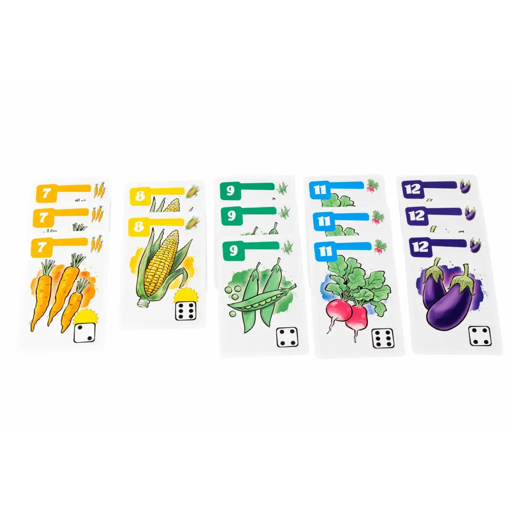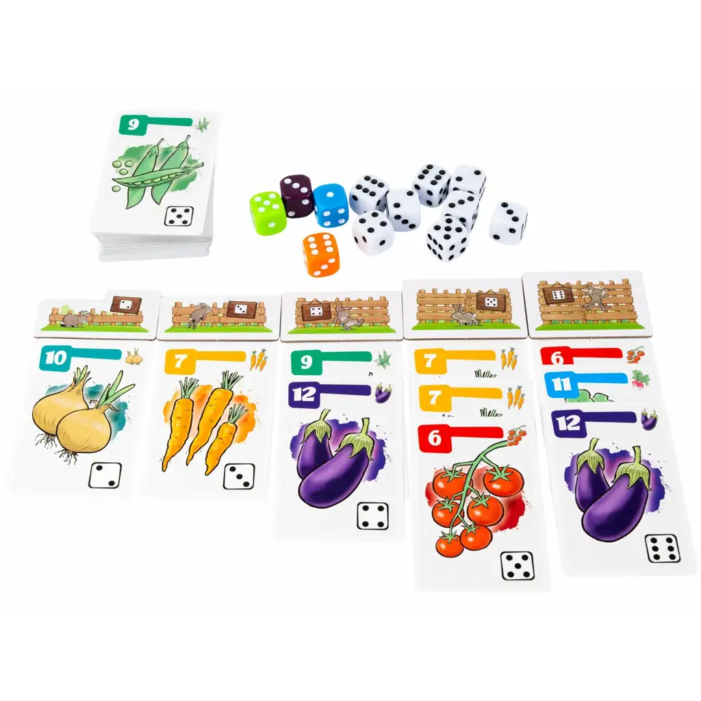 Im Spiel bestimmen in jeder Runde Würfel und Entscheidungen, an welches Gemüse du gelangen kannst. Je nach Werten und Bedingungen auf den Karten kannst du Punkte sammeln – aber nicht jeder Würfelwurf bringt Freude! Hinter dem hohen Zaun kann nämlich jederzeit der Bauer zurückkehren, und dann heißt es schnell die Flucht ergreifen…