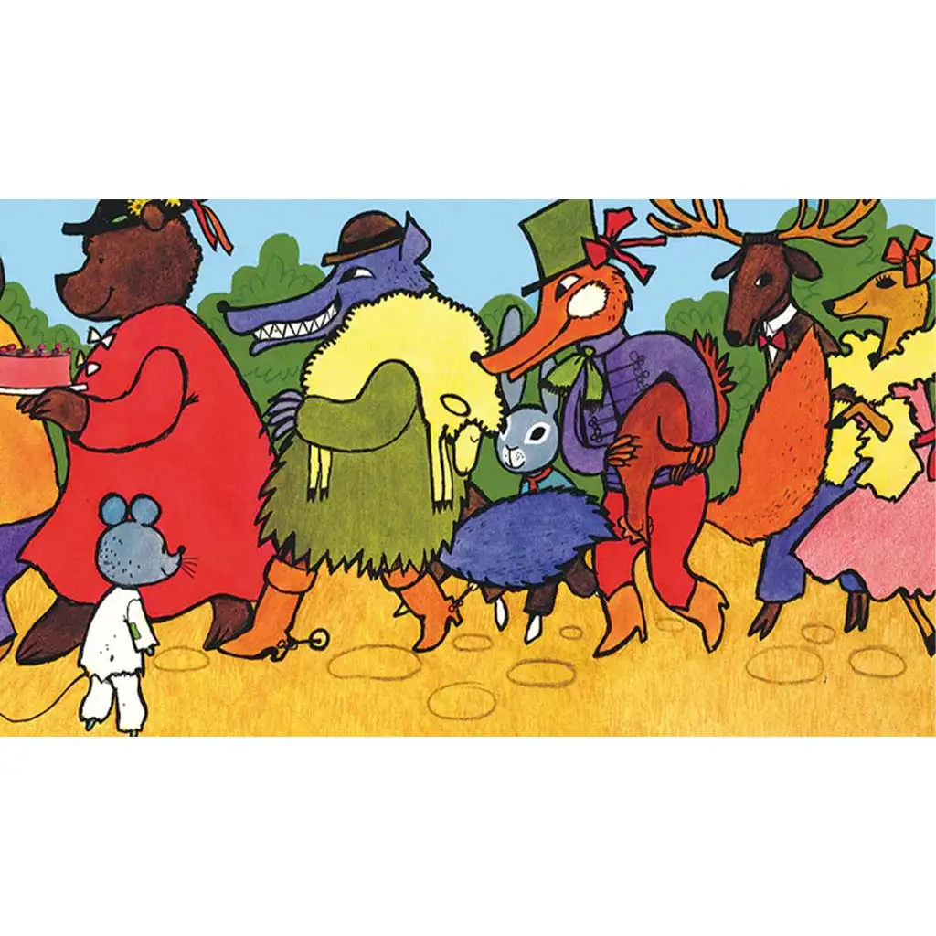 Das Berg-und-Tal-Hochzeits-Diafilm ist ein fröhliches, wendungsreiches Märchen, das auf humorvolle Weise zeigt, wie ausgeschmückte Geschichten entstehen. Die Hauptfigur der Geschichte ist eine arme kleine Maus, die mit großem Mut auf eine vornehme Hochzeitsfeier schleicht. Keine böse Absicht bewegt sie: Sie möchte nur ein paar leckere Häppchen für ihre Familie mit nach Hause nehmen, damit dort niemand hungrig bleibt. Im prächtigen Hochzeitsgetümmel begegnet sie verschiedenen tierischen Gästen, mit Musik, Tanz und köstlichen Speisen – es gibt also viel zu entdecken. Doch als sie nach Hause kommt, erzählt sie ihrer Nachbarin die Ereignisse schon ein bisschen anders: Aus dem bescheidenen Abenteuer wird eine großartige Geschichte, voll von Übertreibungen und lustigen Details. Die klassischen, farbenfrohen Illustrationen geben die festliche Stimmung und die Charaktere der Tiere wunderbar wieder. In Diafilm-Form ist es besonders schön, an den Bildern innezuhalten und gemeinsam über Wahrheit, Fantasie und darüber zu sprechen, warum wir die Wirklichkeit manchmal gerne verschönern. Eine ideale Gute-Nacht-Geschichte, die unterhält und auf spielerische Weise lehrt.