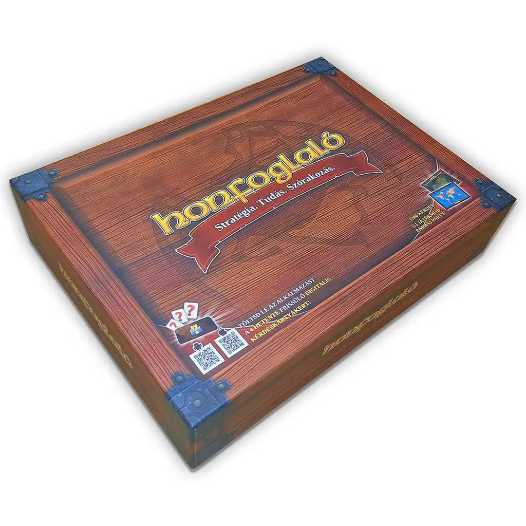 Das Honfoglaló-Brettspiel ist die Tischversion eines der bekanntesten und beliebtesten ungarischen Klassiker unter den mobilen Quizspielen, das nun die ganze Familie und den Freundeskreis an einen Tisch bringt. Wenn du möchtest, dass Kinder und Erwachsene gemeinsam nachdenken, Strategien entwickeln und dabei viel lachen, ist dieses Spiel die perfekte Wahl. Die eindrucksvollen Spielbretter und die hochwertige Verarbeitung sorgen schon beim Auspacken für Stimmung, das wahre Erlebnis bieten jedoch die Fragen und die taktischen Entscheidungen.