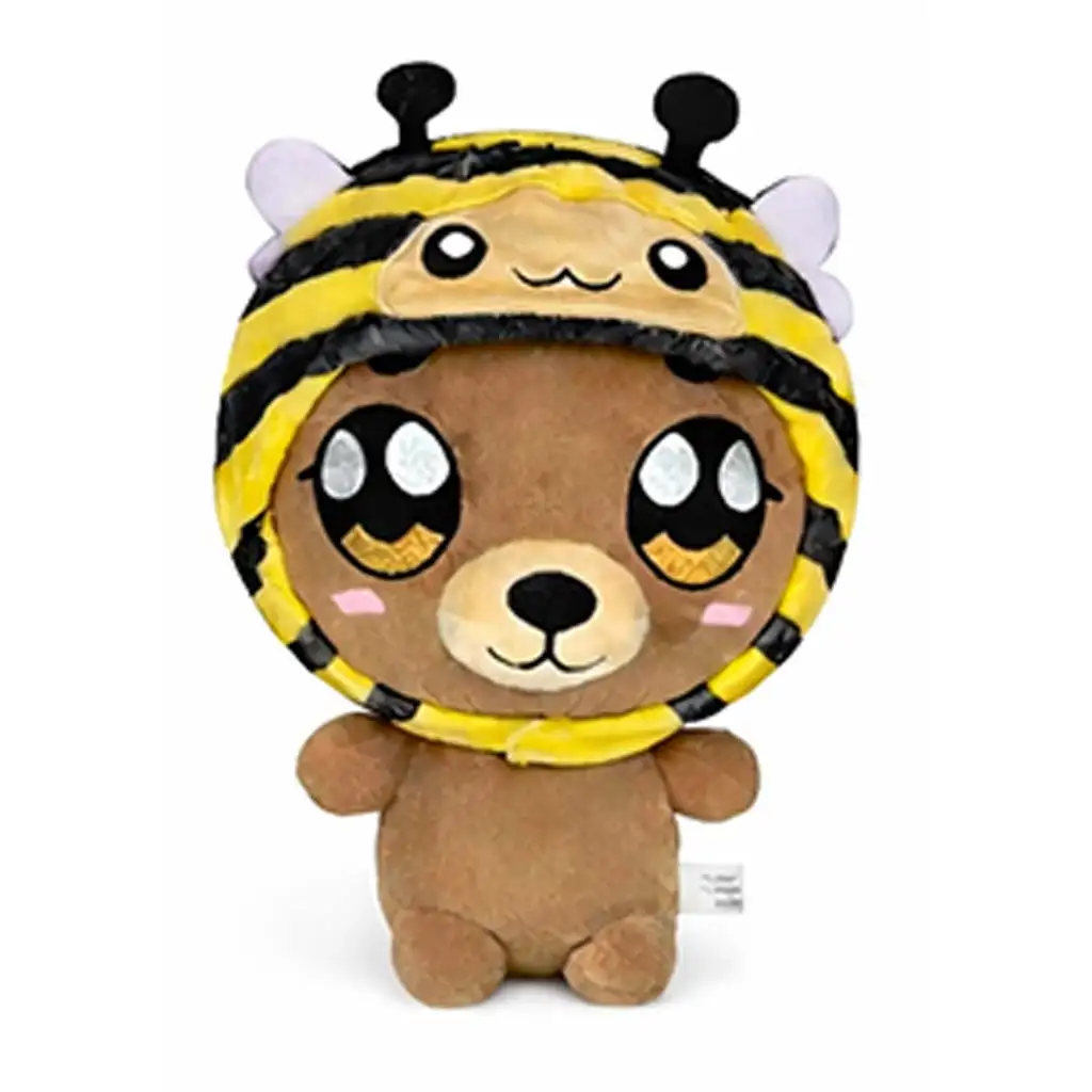 Dieses niedliche kleine Plüschtier ist im Alltag eine wahre Quelle von Lächeln. Den weichen, braunen Körper macht eine fröhliche, bienenförmige Kapuze besonders – mit schwarz-gelben Streifen, kleinen Fühlern und einem bezaubernden Gesicht auf dem Kopfteil. Die großen, glänzenden Augen und die feinen Details machen es wirklich liebenswert, sodass dein Kind es schnell ins Herz schließen wird.