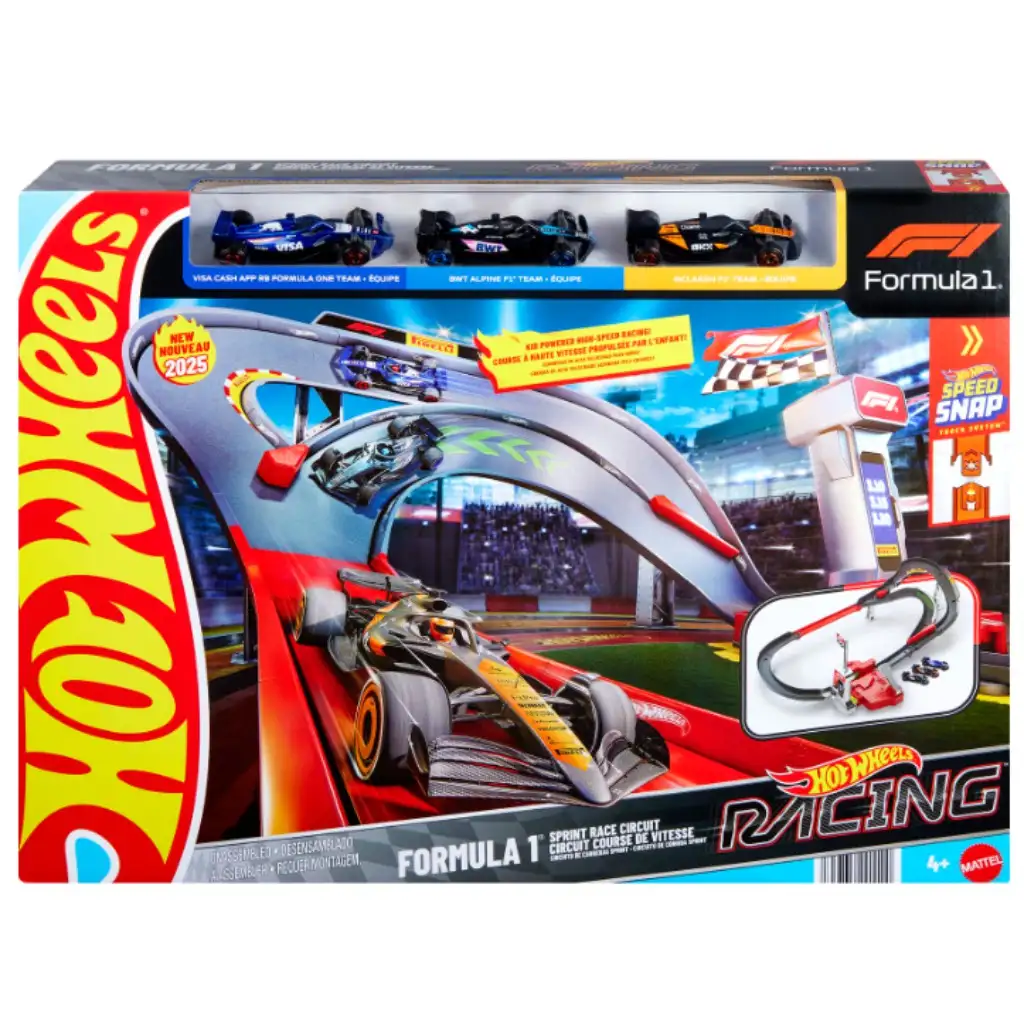 Geschwindigkeit, Spannung und Rennen ziehen jetzt ins Kinderzimmer ein mit dem Hot Wheels: Forma 1 Sprint Rennbahnset! Dieses brandneue Hot Wheels Set ist die perfekte Wahl für Kinder, die die Formel 1 lieben und an ihrer eigenen Meisterschaft teilnehmen möchten – mit 3 coolen F1-Kleinwagen, die echte Teams imitieren.