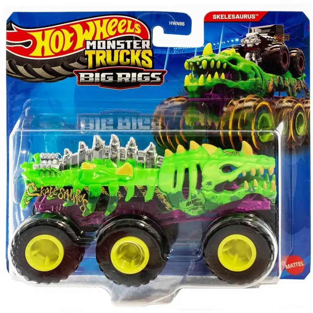 Lass deiner Fantasie freien Lauf in der Welt der Hot Wheels Monster Trucks mit dem beeindruckenden sechsrädrigen Skelesaurus-Abschleppwagen! Dieses coole Fahrzeug vereint die Kraft der Dinosaurier mit der brutalen Leistung von Monster Trucks, um den Kindern ein unglaubliches Erlebnis zu bieten. Mit seinem dinosaurierbezogenen Design und der auffälligen grünen Karosserie, die an ein Skelett erinnert, zieht der Skelesaurus sofort alle Blicke auf sich.