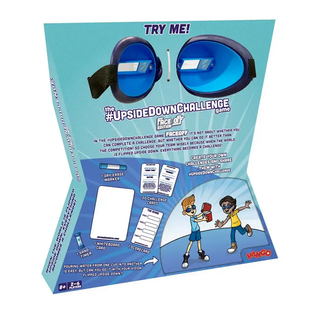 Sieh alles auf dem Kopf und lache, solange du kannst! Das „Kopf über“-Herausforderung Brettspiel – Face Off Edition ist ein unglaublich lustiges und bewegungsreiches Partyspiel, das die Welt um dich herum völlig auf den Kopf stellt – im wahrsten Sinne des Wortes! Die spezielle Brille, die zum Spiel gehört, dreht deine Sicht komplett um, sodass selbst die einfachsten Aufgaben zu einer echten Herausforderung werden. Gieße Wasser von einem Glas ins andere, zeichne eine gerade Linie oder gib jemandem die Hand – während die Welt kopfüber ist!