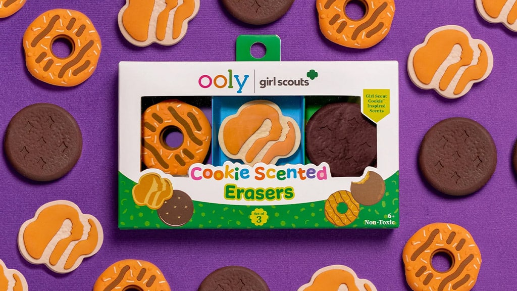 Damit auch das Lernen süßer wird, wähle einen Thin Mint, Coconut Caramel oder Trefoil Radiergummi! Diese radierbaren Puzzle-Stücke in Keksform helfen spielerisch, Fehler zu korrigieren, und machen sogar das Ausbessern zu einem Erlebnis.