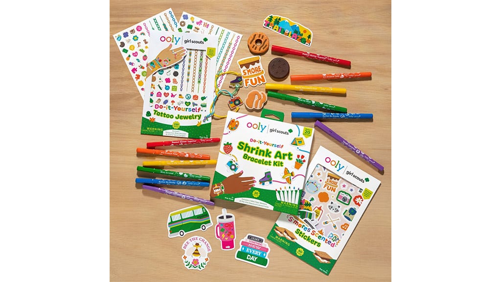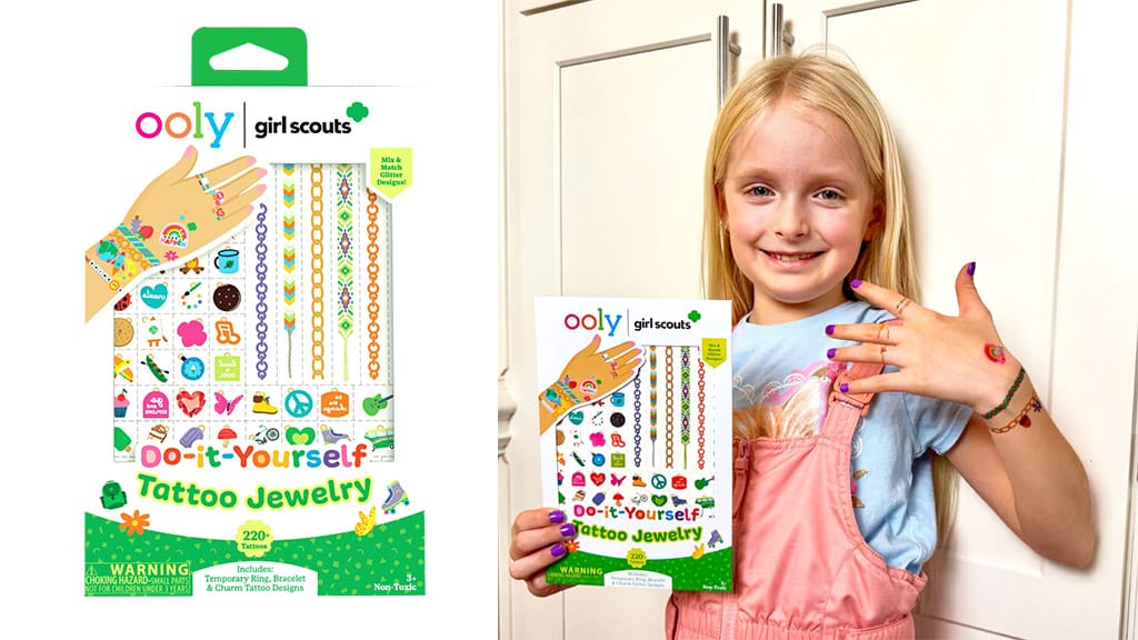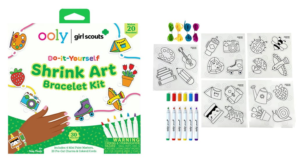 Kinder können jetzt ihren individuellen Stil mit zwei besonderen, selbstgemachten Accessoire-Sets wirklich zeigen. Das OOLY x Girl Scouts DIY Schrumpffolien-Armband-Set enthält alles, was Kinder brauchen, um einzigartige Schmuckstücke zu entwerfen und zu dekorieren: Filzstifte, Schnüre sowie 20 vorgestanzte Schrumpffolien-Anhänger. Falls das selbstgemachte Kunstwerk einmal verloren geht, kein Problem — das DIY-Set für temporäre Tattoo-Schmuckstücke enthält drei Bögen mit glitzernden, aufklebbaren Armbändern, Ringen und Anhängern, sodass Kinder ihre Freundschaftsarmbänder nie wieder verlieren! Mit diesen Kreativ und fähigkeitsfördernd Produkten können die Kleinen nicht nur Spaß haben, sondern auch ihre Fingerfertigkeit und Selbstentfaltung fördern.