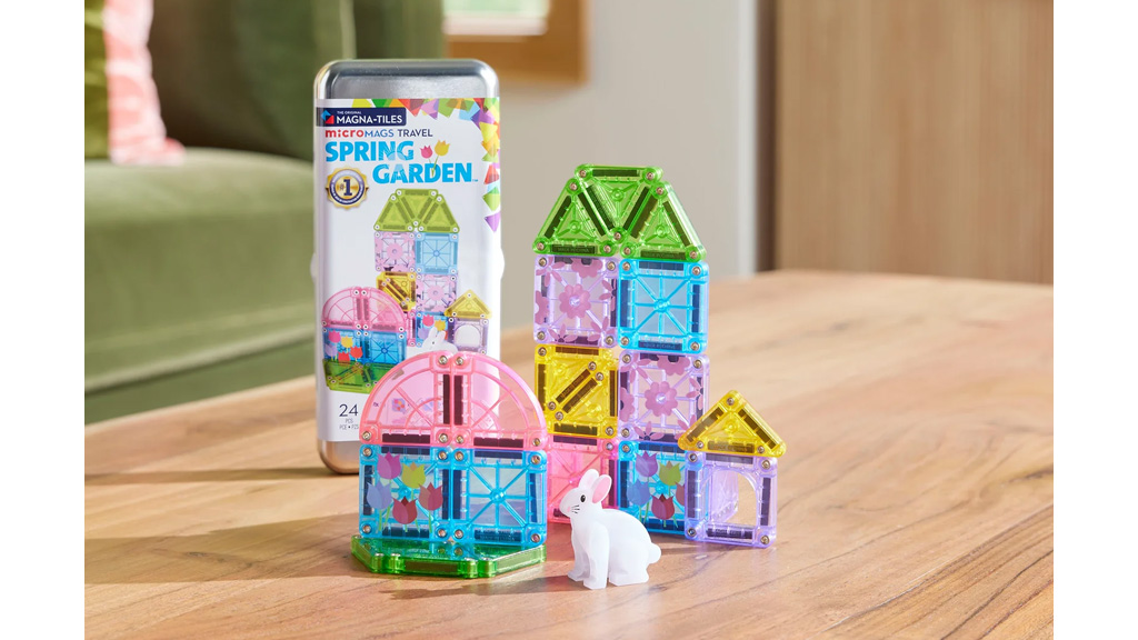 Die Kollektion enthält ab sofort das microMAGS Frühlingsgarten 24-teiliges Reiseset, das pastellfarbene, blumengemusterte Elemente bietet. Kinder können mit dem Set frühlingshafte Skulpturen bauen, bestehend aus sechs gleichseitigen Dreiecken, einer Hasenfigur, einem Bogenfenster, vier rechtwinkligen Dreiecken, vier Viertelkreisen, vier Quadraten sowie vier mit Blumen verzierten Quadraten. Dieses Set bietet nicht nur kreativen Spielspaß, sondern fördert auch die Geschicklichkeit und Fantasie, während die Kinder farbenfrohe, frühlingshafte Kreationen erschaffen.