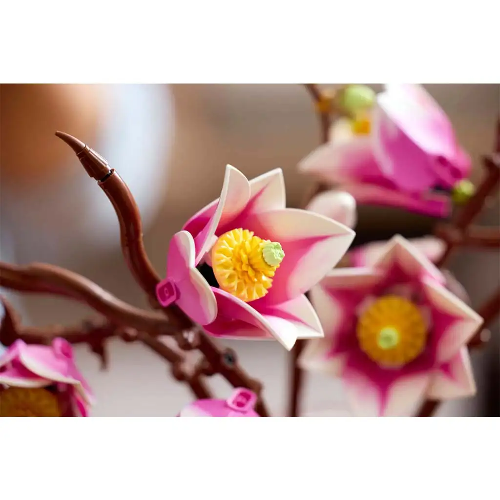 • LEGO® MAGNOLIEN – Das Bauset enthält 5 Magnolienzweige, von denen an 2 Zweigen der komplette Entwicklungsverlauf der Blüte zu sehen ist, vom kleinen Knospenstadium bis zu den geöffneten Blütenblättern