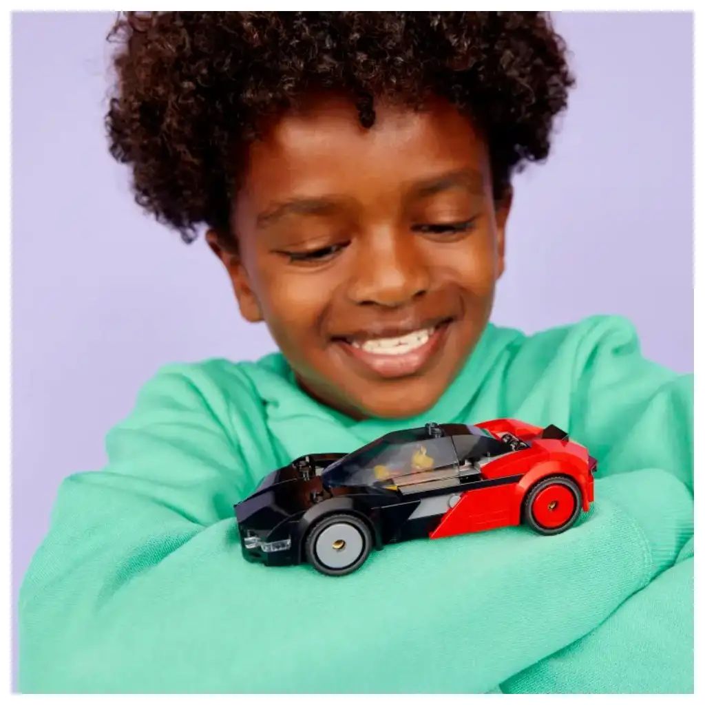 • WIE IM ECHTEN LEBEN – Hebe die hintere Klappe des kleinen schwarz-roten Sportwagens an, um an die Batterie zu gelangen, und setze die Minifigur hinter das Lenkrad, um Vollgas zu geben