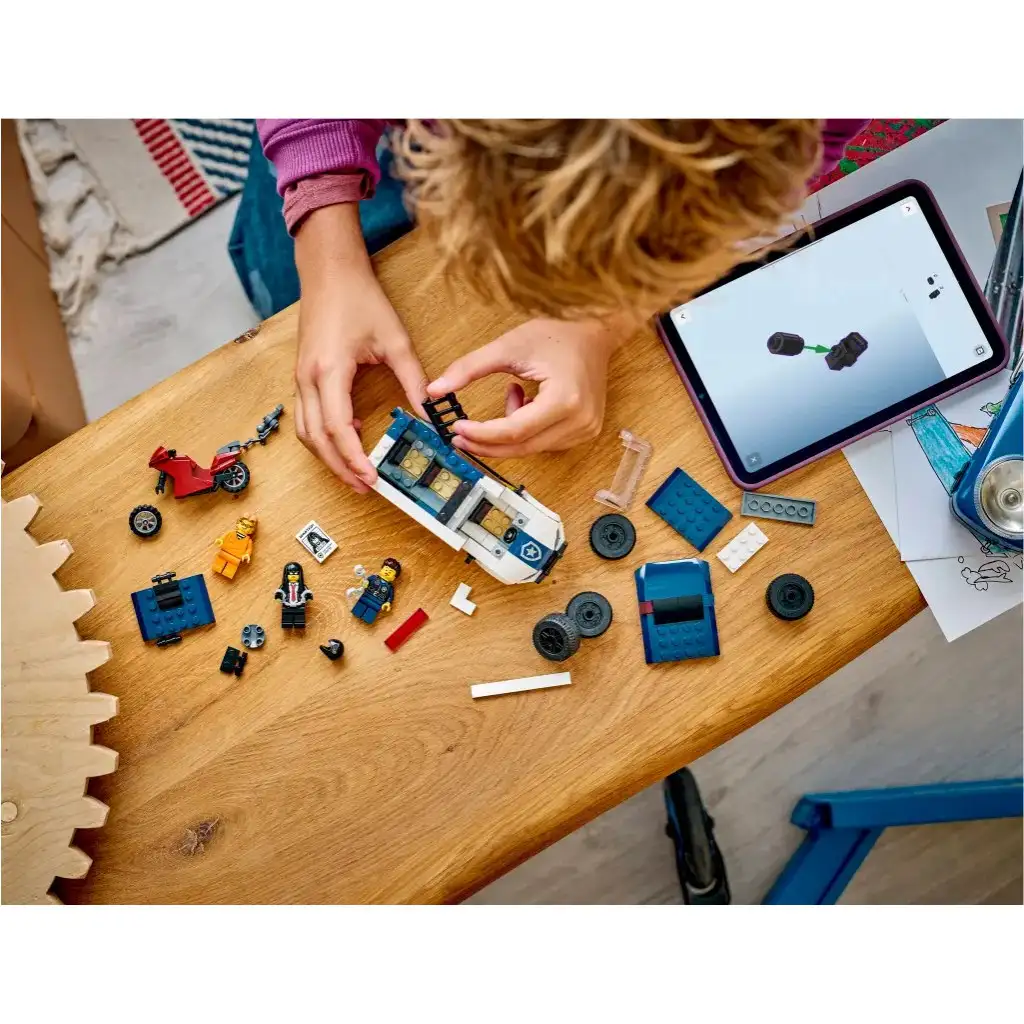 • LUSTIGES FAHRZEUG-BAUSET FÜR KINDER – Dieses Bauset enthält alles, was Kinder brauchen, um ein Fluchtmotorrad und ein Polizeiauto mit eingebauter Gefängniszelle zu bauen.