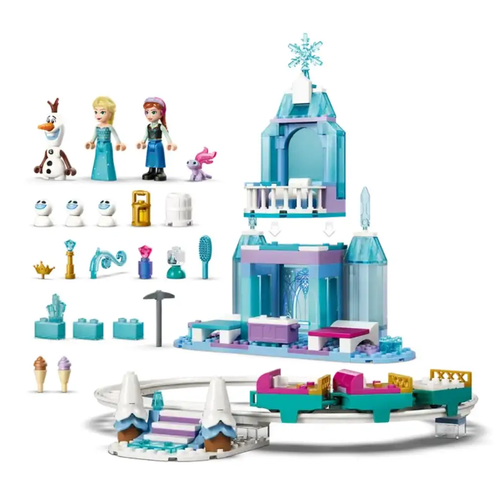 • SCHLOSS MIT BAHN UND SCHLITTEN – Dieses „Elsas Eispalast und Schlitten-Abenteuer“ (43281) Bauset enthält 7 LEGO ǀ Disney Die Eiskönigin Figuren, ein zweistöckiges Schloss, eine Strecke mit 3 Schlitten, Treppen und vieles mehr