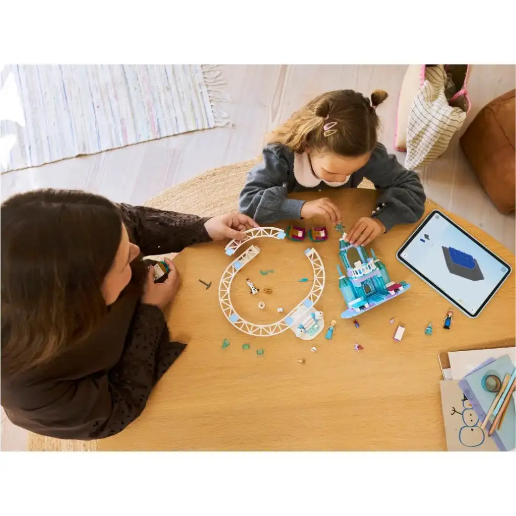 Verschenke dieses LEGO® ǀ Disney Die Eiskönigin Elsas Eispalast und Schlitten-Abenteuer (43281) Bauset an Kinder ab 4 Jahren! Fördere kreatives Spielen mit 7 LEGO ǀ Disney Die Eiskönigin Figuren: Elsa, Anna, Olaf, Bruni und 3 Schneebälle sowie einem zweistöckigen Schloss mit Thronsaal, Balkon, 2 Betten und Küche. Das Set enthält außerdem eine separate Bahn mit Treppe, 3 Schlitten, auf denen jede der enthaltenen Figuren fahren kann. Entdecke die Begeisterung der Kinder für Disney Die Eiskönigin mit einem Schloss, das ein tolles Geburtstagsgeschenk für Mädchen und Jungen ist und mit anderen LEGO ǀ Disney Sets (separat erhältlich) kompatibel ist! 5 Starter-Elemente helfen den Kindern beim einfachen Einstieg und in jeder Tüte befindet sich ein baubares Modell sowie eine Figur, damit der Spielspaß schnell losgehen kann. Neben einfachen, bildlichen Anleitungen für Leseanfänger gibt es in der LEGO Builder App ein intuitives, digitales Bauerlebnis, bei dem Kinder ihre Modelle mit Hilfe von 3D-Anleitungen vergrößern, drehen, speichern und ihren Baufortschritt verfolgen können. Das Set enthält 216 Teile.