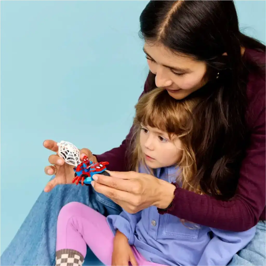 • ROLLENDE MARVEL-ACTION – Die Kinder helfen Spider-Man, einen gestohlenen blauen Edelstein zurückzuerobern, weichen den fliegenden Pizzen aus Rhinos Pizzakanone aus und fangen Rhino in einer riesigen Spinnennetzfalle, die am Motorrad angebracht werden kann