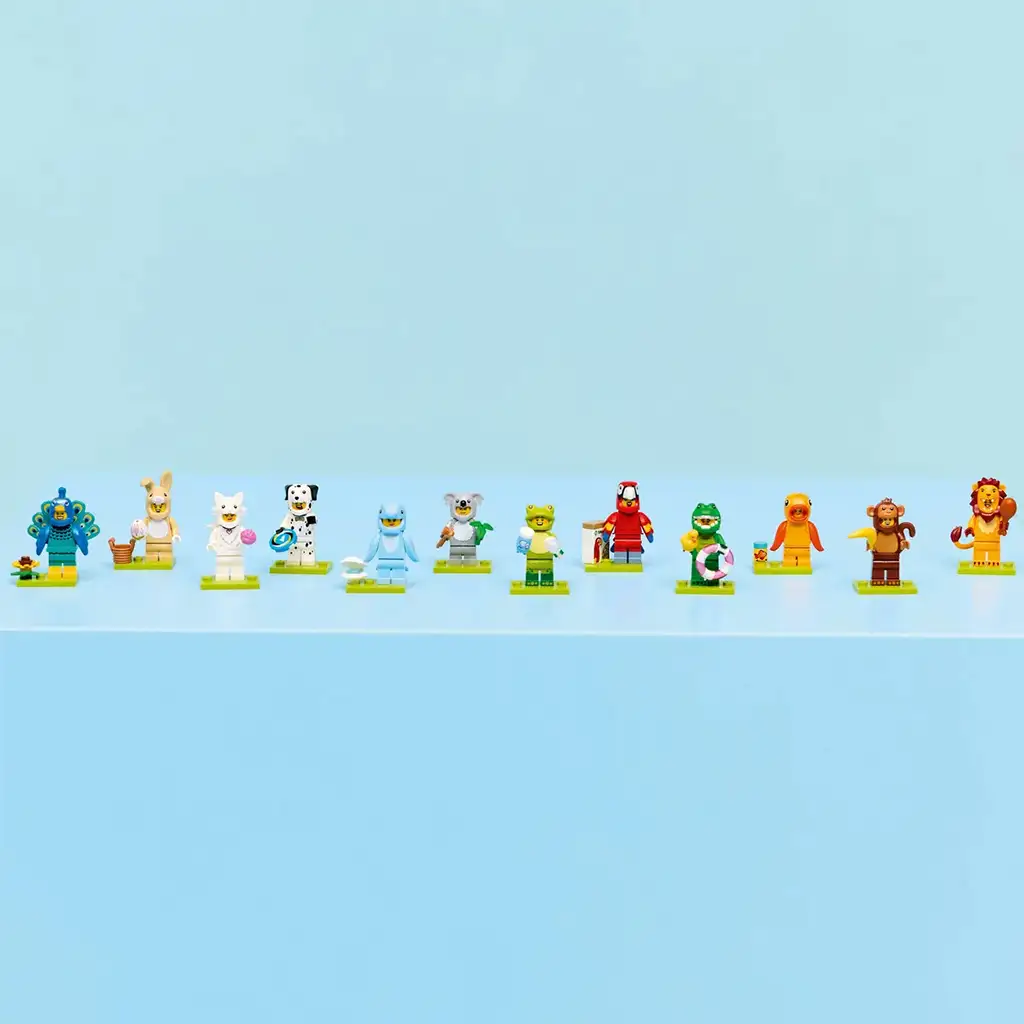 Mädchen und Jungen ab 5 Jahren können mit einer der 12 Sammelfiguren, die in den Überraschungspaketen der LEGO® Minifiguren Tiere Serie 28 (71051) zu finden sind, unterhaltsame Geschichten nachspielen. In jedem Paket befindet sich eine Überraschungs-LEGO-Minifigur, und insgesamt gibt es 12 Spielfiguren zum Sammeln, darunter Papagei, Löwe, Frosch, Krokodil, Dalmatiner, Goldfisch, niedlicher Hase, Pfau, flauschige Katze, Koala, Delfin und als Tiere verkleidete Minifiguren wie Affe. Jede der 12 Minifiguren befindet sich in einer versiegelten Überraschungsbox und wird mit mindestens einem Zubehör geliefert. Diese detailreichen, niedlichen Tierfiguren können eine bestehende Sammlung erweitern, stolz ausgestellt oder für fantasievolle Geschichten verwendet werden. Dieses kleine Geschenk ist eine tolle Überraschung für Kinder, die Tiere und die Natur lieben, und inspiriert sie dazu, alleine oder mit Freunden großartige Geschichten zu erzählen und stundenlang zu spielen.