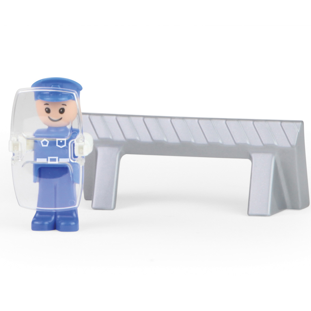 Polizeifigur und Zubehör (z. B. Straßensperre)