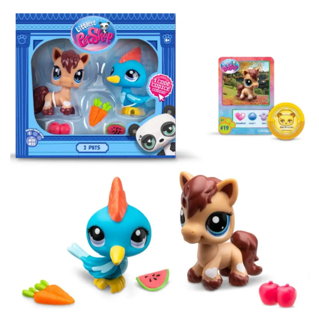 Die Favoriten der Littlest Pet Shop Serie sind alle mit detaillierter Ausarbeitung und charmantem Aussehen versehen, die sich sofort in die Herzen der Kinder schleichen. Zum Set gehört auch ein spezieller Code, mit dem man online auf virtuelle Inhalte zugreifen kann, wodurch das Spielerlebnis auch im digitalen Raum erweitert wird.