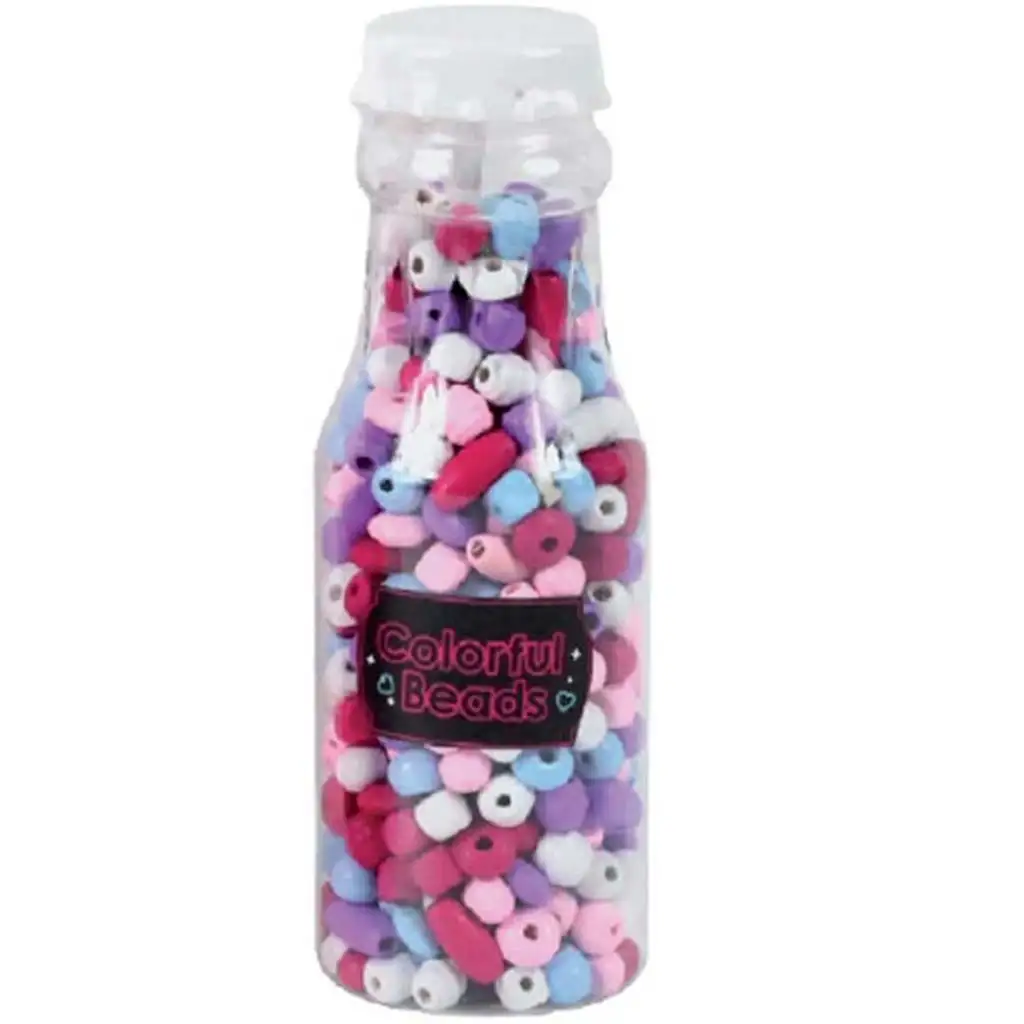 Der stilvolle, aus Kunststoff gefertigte „Milchglas“-förmige Behälter ist gefüllt mit bunten Perlen in verschiedenen Formen. Unter ihnen finden sich rosa, lila, rot, blau und weiße Farbtöne – perfekt aufeinander abgestimmte Pastell- und leuchtende Töne.