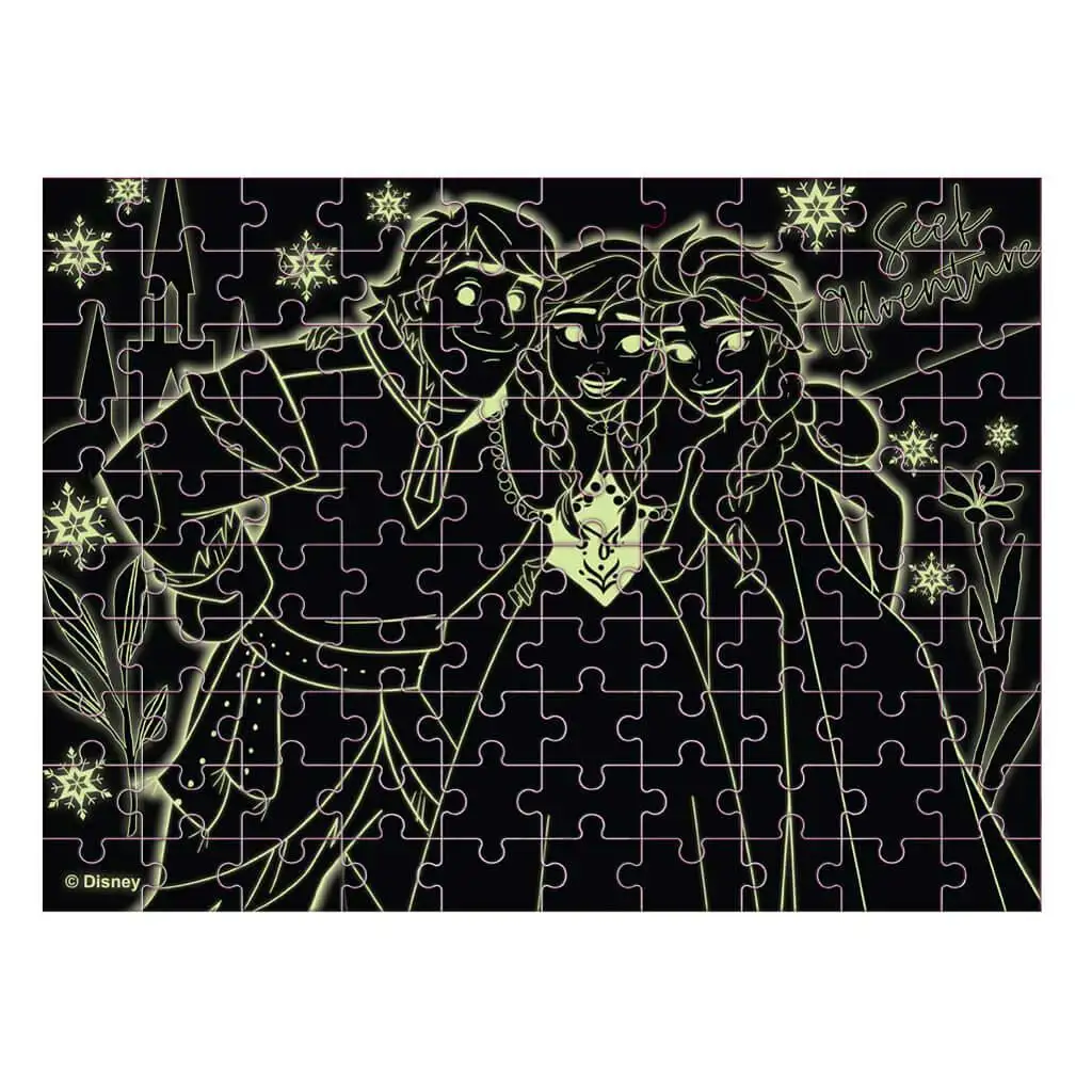 Dieses 100-teilige Frozen-Puzzle verbirgt nicht nur ein farbenfrohes Bild, sondern erwacht im Dunkeln mit seinen leuchtenden, phosphoreszierenden Mustern zum Leben und bietet so sowohl tagsüber als auch abends ein spannendes Erlebnis.