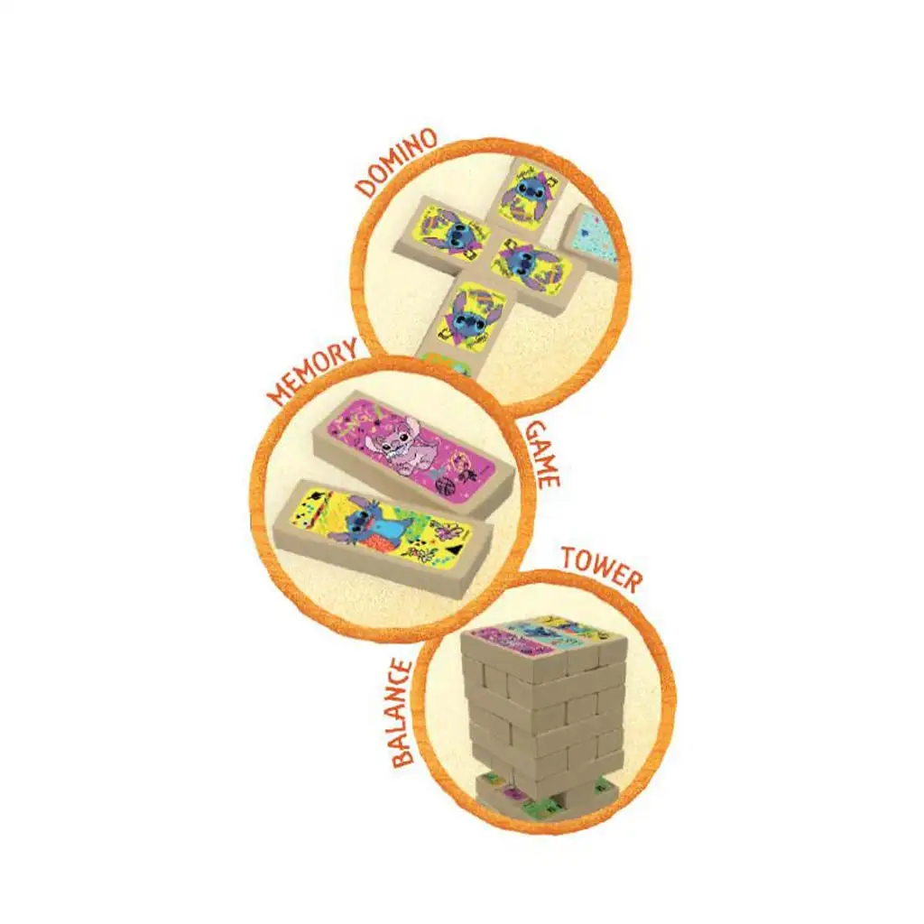 Luna: Disney Stitch 3-in-1 Gesellschaftsspiel – Jenga, Domino und Memospiel