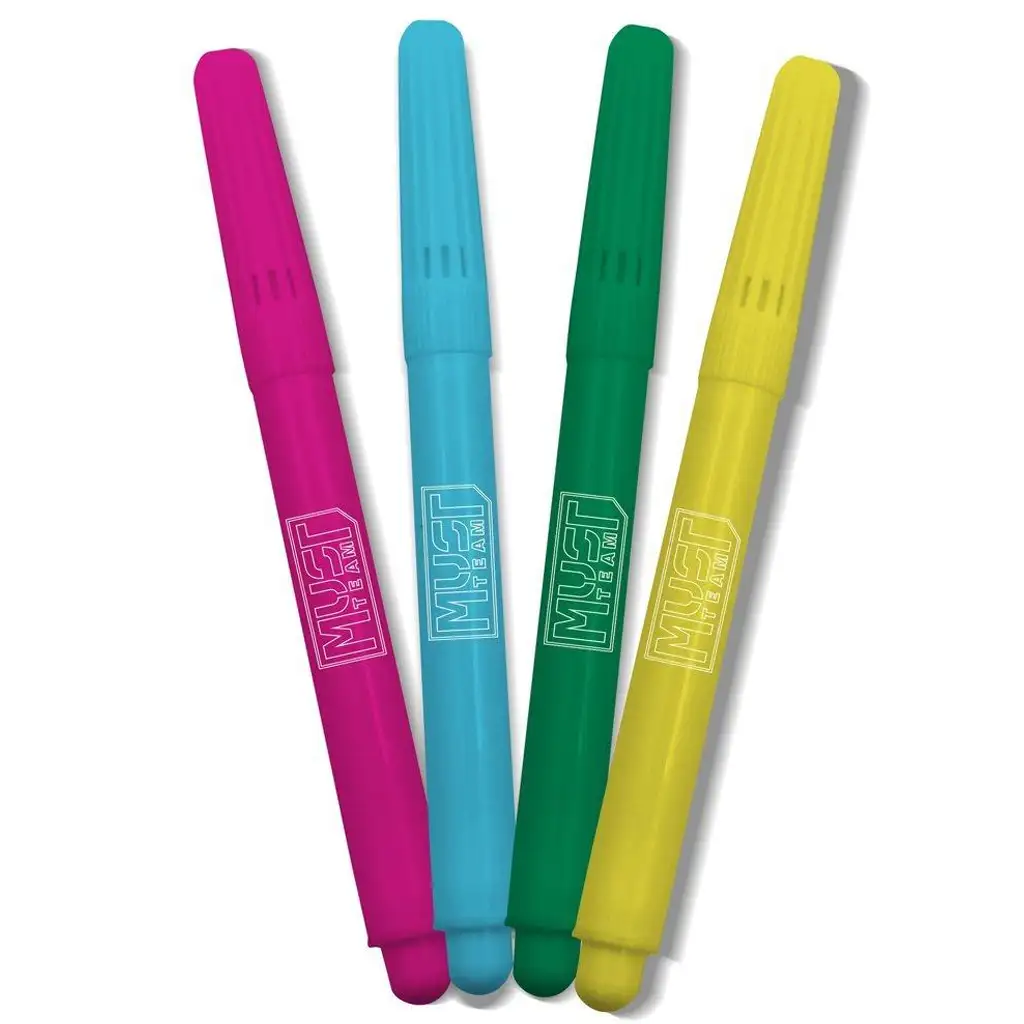 - 4 leuchtende Filzstifte (Pink, Hellblau, Grün, Gelb)